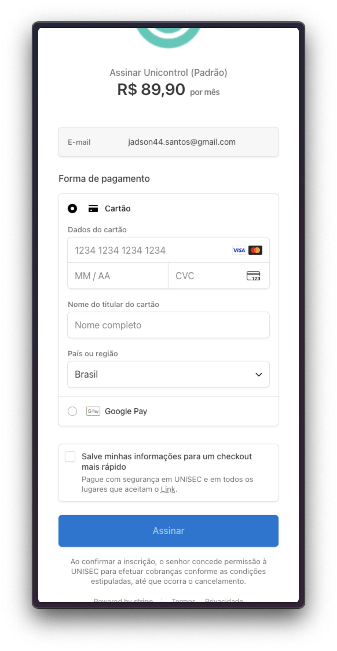 Toque no botão “Ativar Skill”, nossa skill irá solicitar que você vincule seu Unicontrol ID com a nossa plataforma.